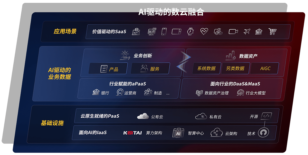 以尊龙旗舰厅鲲泰全国产化计算产品帮助金融行业客户构筑数字底座;以丰富的AI和数云产品及方案,,保障数据安全,,,,挖掘数据价值,,,提升服务品质