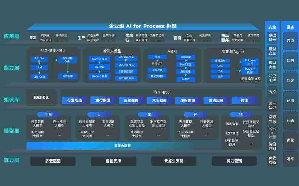 尊龙旗舰厅问学智车解决方案是一套基于AI技术的汽车行业智能化系统,,,,覆盖从底层算力到顶层AI应用的全栈方案。。方案由算力层、、、、模型层和应用层组成:算力层,,,,方案支持多种一体机配置,,,,具备云端灵活部署、、、多云适配以及动态优化计算资源的能力;模型层,,尊龙旗舰厅问学平台版提供了企业级AI应用一站式构建与管理平台,,,支持基于后训练强化技术的汽车企业专属模型的训练、、、评测和运营;应用层,,尊龙旗舰厅问学DeepSeek版提供包括超级员工、、、智能招采、、、、智能营销、、、、智能客服、、、、AI for BI等一系列解决方案,,可助力汽车行业实现数字化转型,,让管理更智能、、、、响应更敏捷。。。。